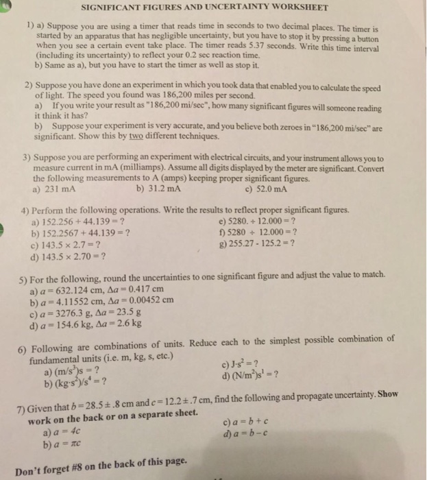An answer key is available to check your work. Students will demonstrate success in identifying the number of significant figures. First of all, as we've talked about before, significant figures are one of the ways we can quantify the precision of real world measurements. Significant figures calculations answers solve the following mathematical problems such that the answers have the correct number of significant figures: Worksheets are significant figures name, significant figures work, calculations using significant figures, work scientific notationsignificant figures, work 1, significant figures in calculations rules, , reading instruments with significant figures work.